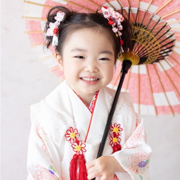 着付け・ヘアメイク・撮影をその場で全てしていただけるので、集中の続かない子供の機嫌が良いうちに写真撮影を済ませられるのも嬉しいポイントです。