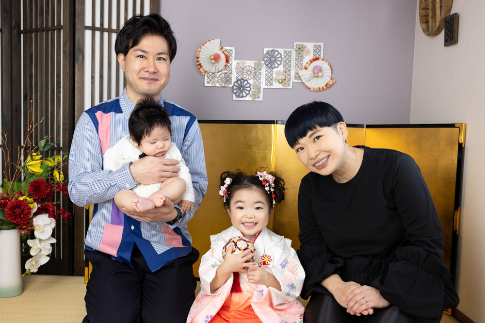 大人用訪問着、羽織袴揃っています。着付けは着付け歴4年以上のオーナーカメラマンが担当。着付けを熟知しているカメラマンなので、撮影中の気崩れも心配ありません。