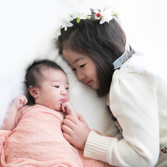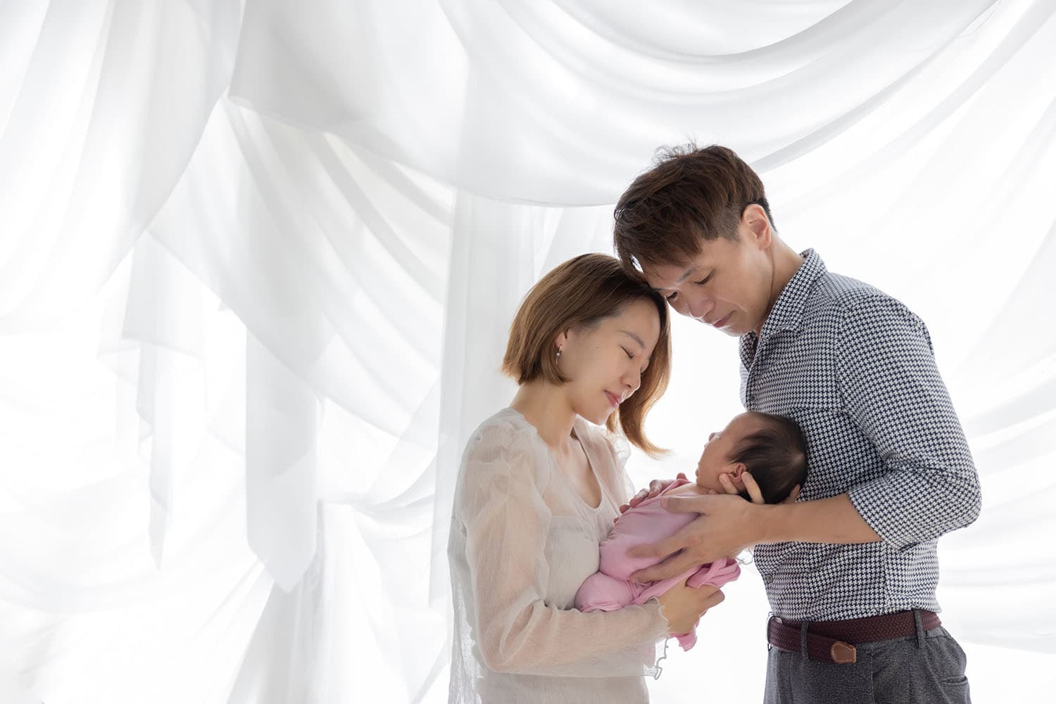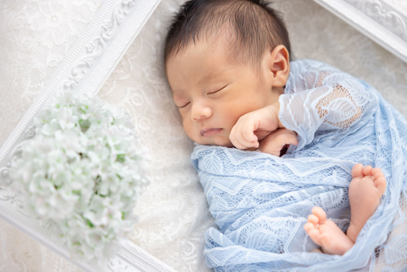 うつ伏せポーズはご希望がある場合のみ短時間で対応いたしますが、赤ちゃんのご様子を見ながら難しい場合は横向きのポーズで撮影させていただきますこと、ご了承ください。