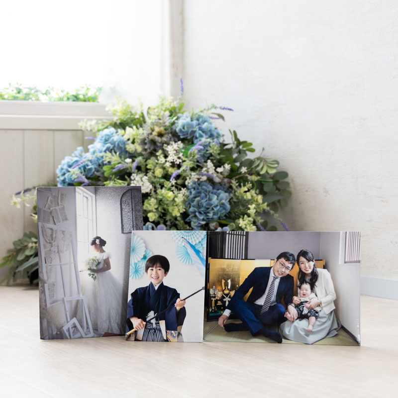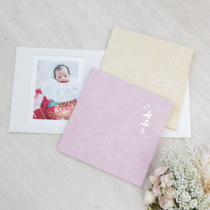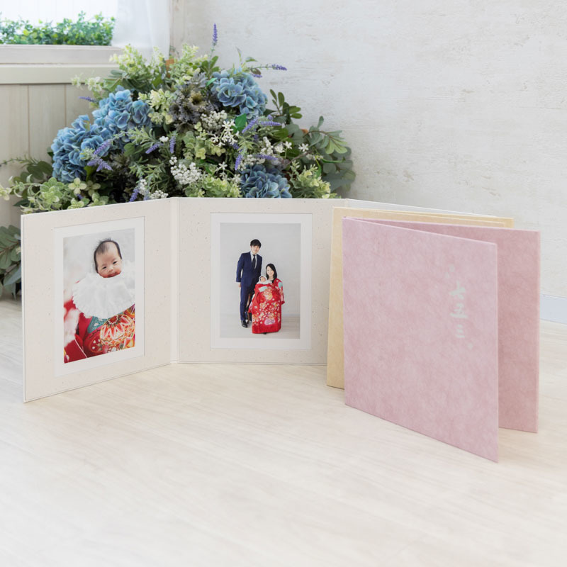 スタンダードな3面台紙です。表紙は色々なパターンからお選びいただけます。(七五三、成人式、アニバーサリー等)