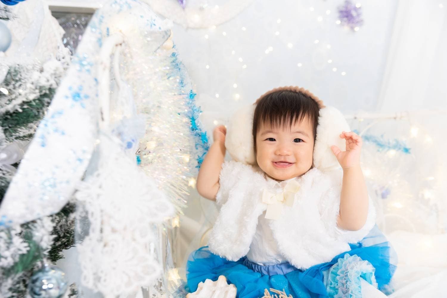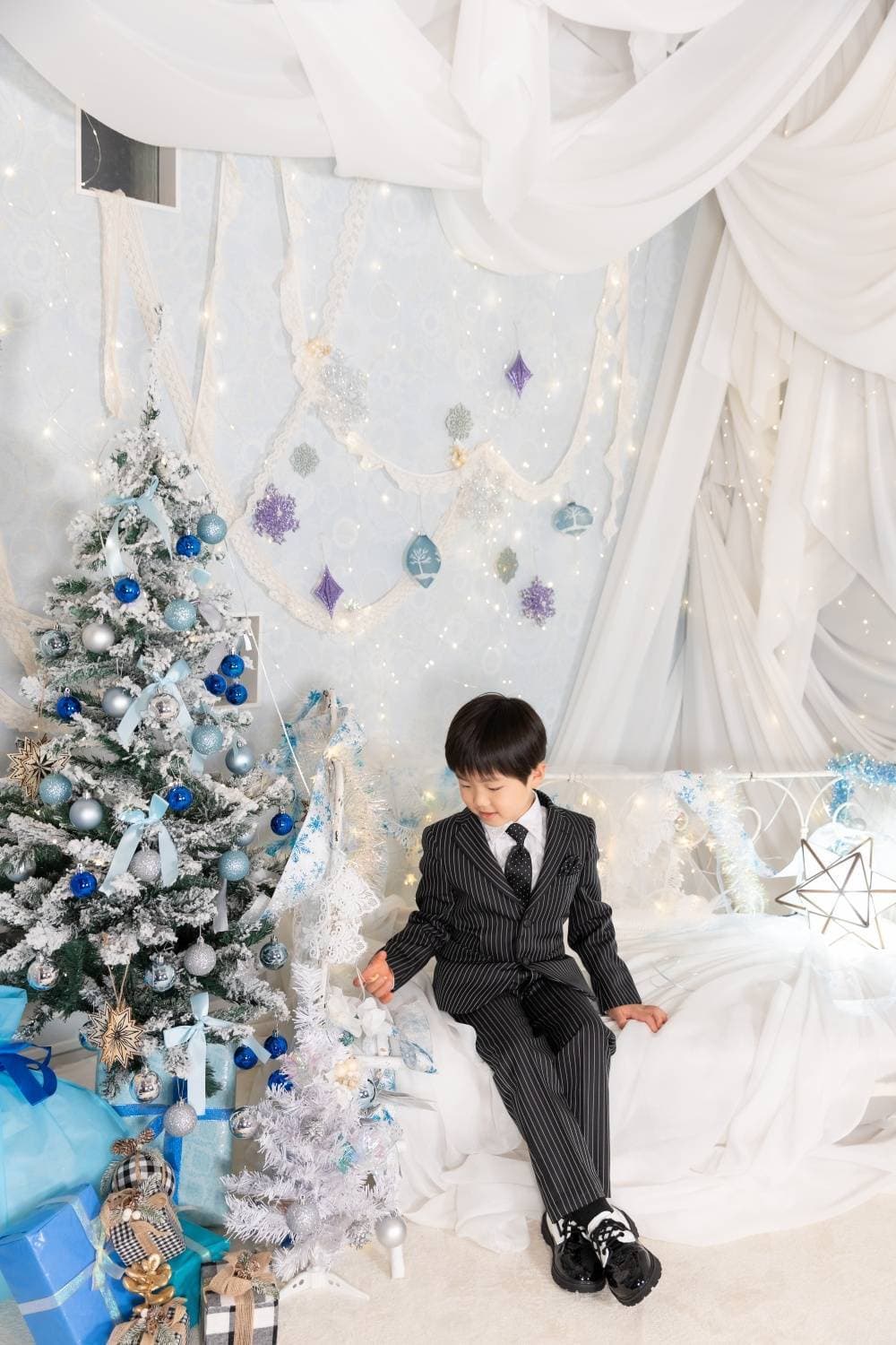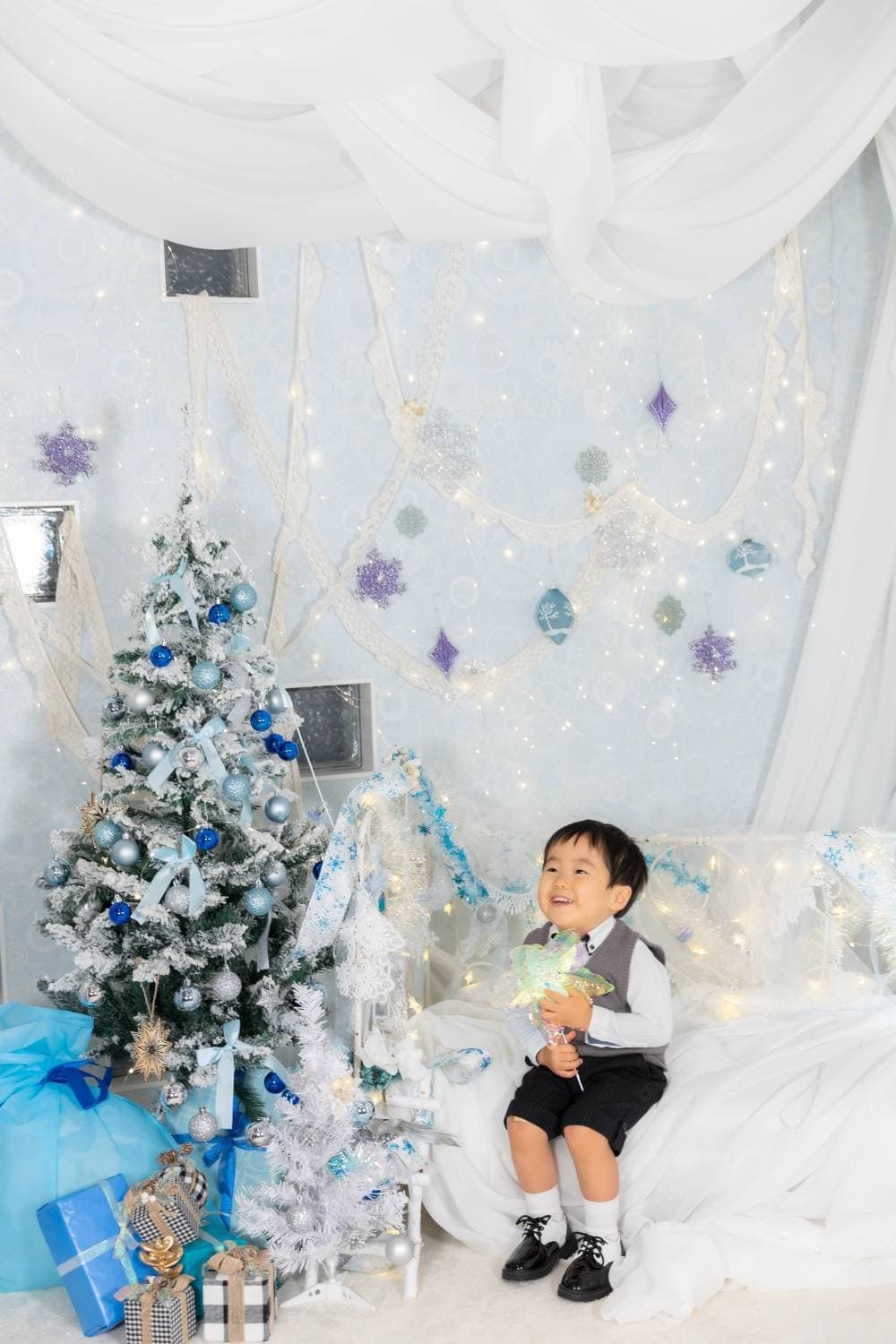 白いクリスマスツリーや背景も白が基調の飾り付けでまるで雪のような世界観で素敵でした。