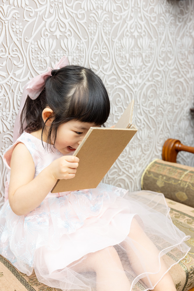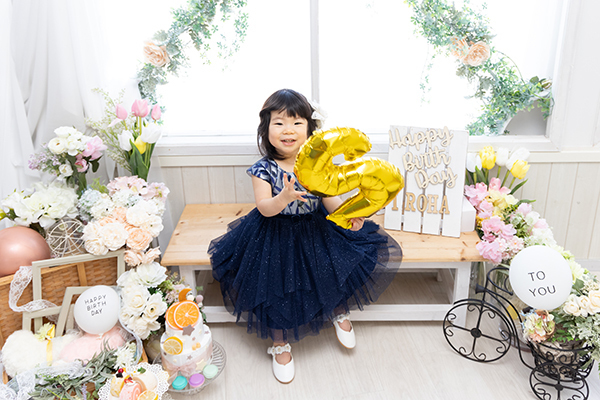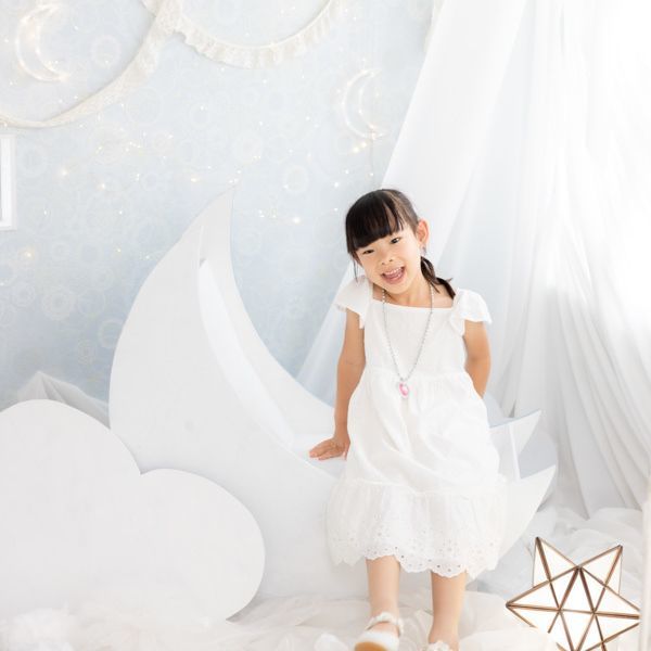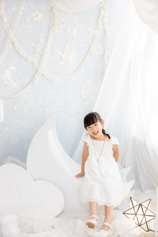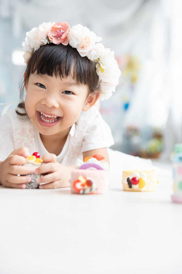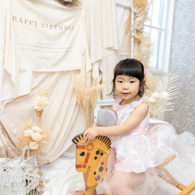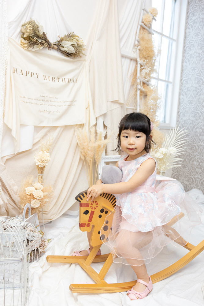 スタジオには何ヶ所か写真撮影を行えるスペースがありますが、どこで撮っても絵になる空間が準備されています。小道具もたくさんあるので、写真もとても映えます。撮影においては、どんな瞬間にもカメラを構えてくださっていて、かわいい瞬間はもちろんの事、自然な表情や仕草まで様々な写真を撮ってくださいます。撮影後に完成した写真を見て、こんなところまで撮ってくださっているのかと驚きます。また、私自身(母親として)もこんな表情で娘や息子と接しているのだなぁと思う感慨深い写真も撮っていただき大満足です。