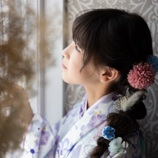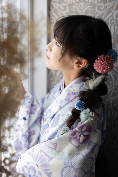 着付け・ヘアメイク・撮影をその場で全てしていただけるので、集中の続かない子供の機嫌が良いうちに写真撮影を済ませられるのも嬉しいポイントです。