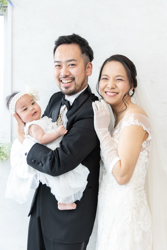 以前からこちらのカメラマンさんの写真を存じ上げていて、人の魅力的な一瞬をすごく素敵に捉える方だなと思っていました。特に子供たちの写真が、笑顔もそうじゃない写真もすごく素敵なので、コロナで機会を逃していたウェディングフォトを0歳の娘と一緒にお願いするのに、迷わずこちらに決めました。
