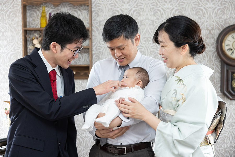 第一子のお宮参りで、親子3人のスタジオ撮影をお願いしました。